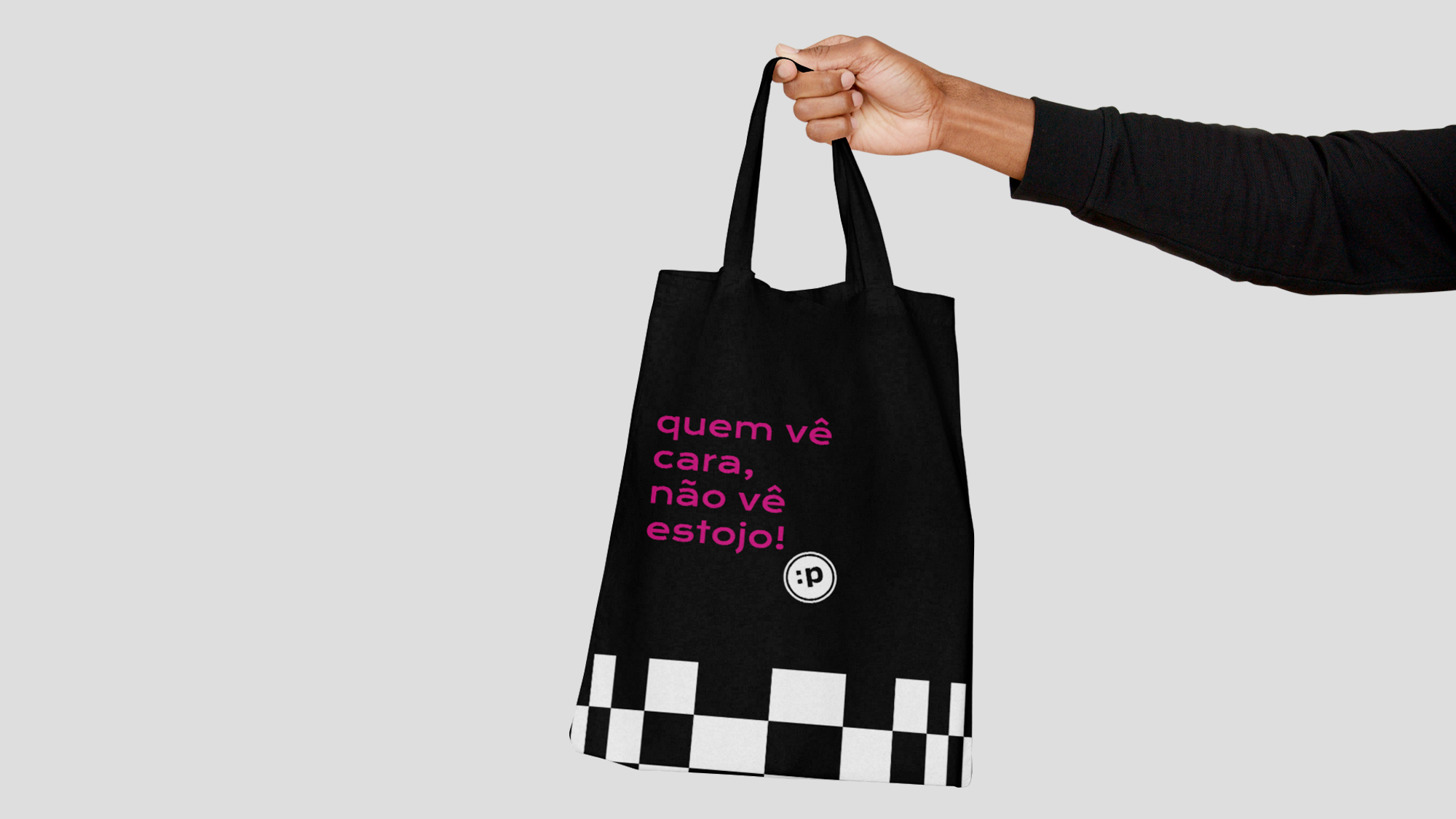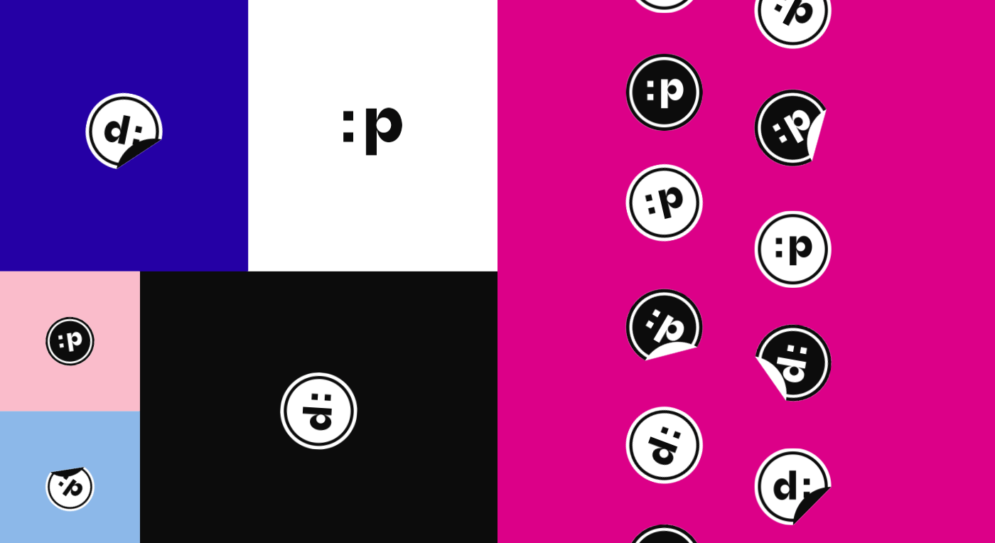 Assim como para o logotipo, a fonte KyivType Sans (no estilo Heavy-) foi utilizada para a criação do símbolo. Rebeldia, liberdade e criatividade são atributos identificados no novo símbolo. Em sua composição está a pontuação dupla, seguido pela letra P. Como visto e utilizado nas redes sociais (locais onde o público mais encontrará a marca), uma carinha com língua para fora é formada, transmitindo a personalidade. Além disso, o símbolo brinca com a inicial do nome da marca e do segmento. Quando usado com forma circular, simula um adesivo e mostra sua parte “descolada”, fazendo ligação com o nome. É possível usar o símbolo de qualquer ângulo, pois permanece identificável. Inclusive, se rotacionado em 180º, também é vista a letra D. O formato “escrito” (:p) é recomendado usar somente em textos corridos.
