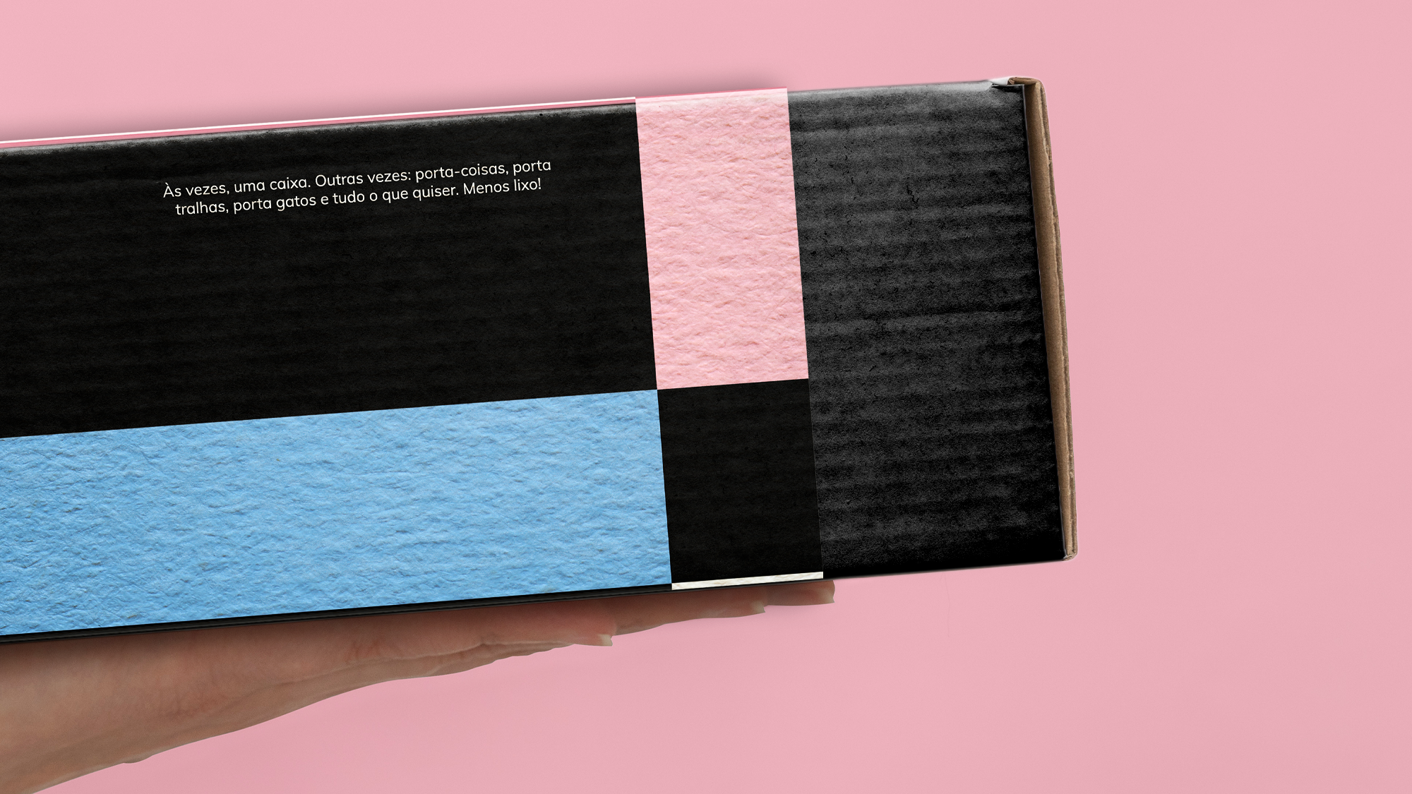As possibilidades de assinatura são muitas, já que não há restrição de posição e/ou ângulo, além de ter também a versão em horizontal. O logotipo pode ser utilizado em todas as quatro cores, enquanto o símbolo apenas em preto e branco. O fundo preenchido também pode receber toda a paleta selecionada para esta identidade.