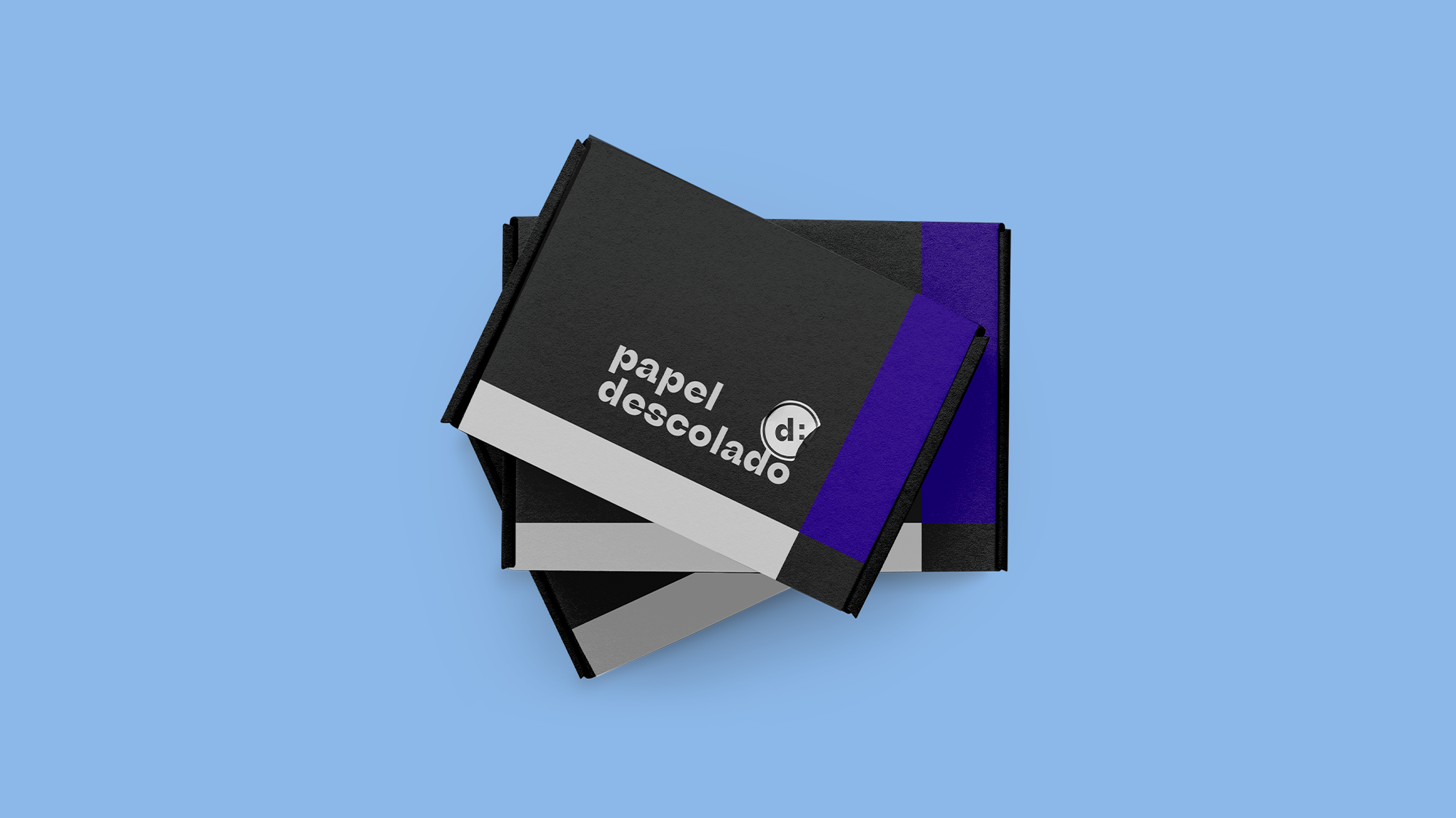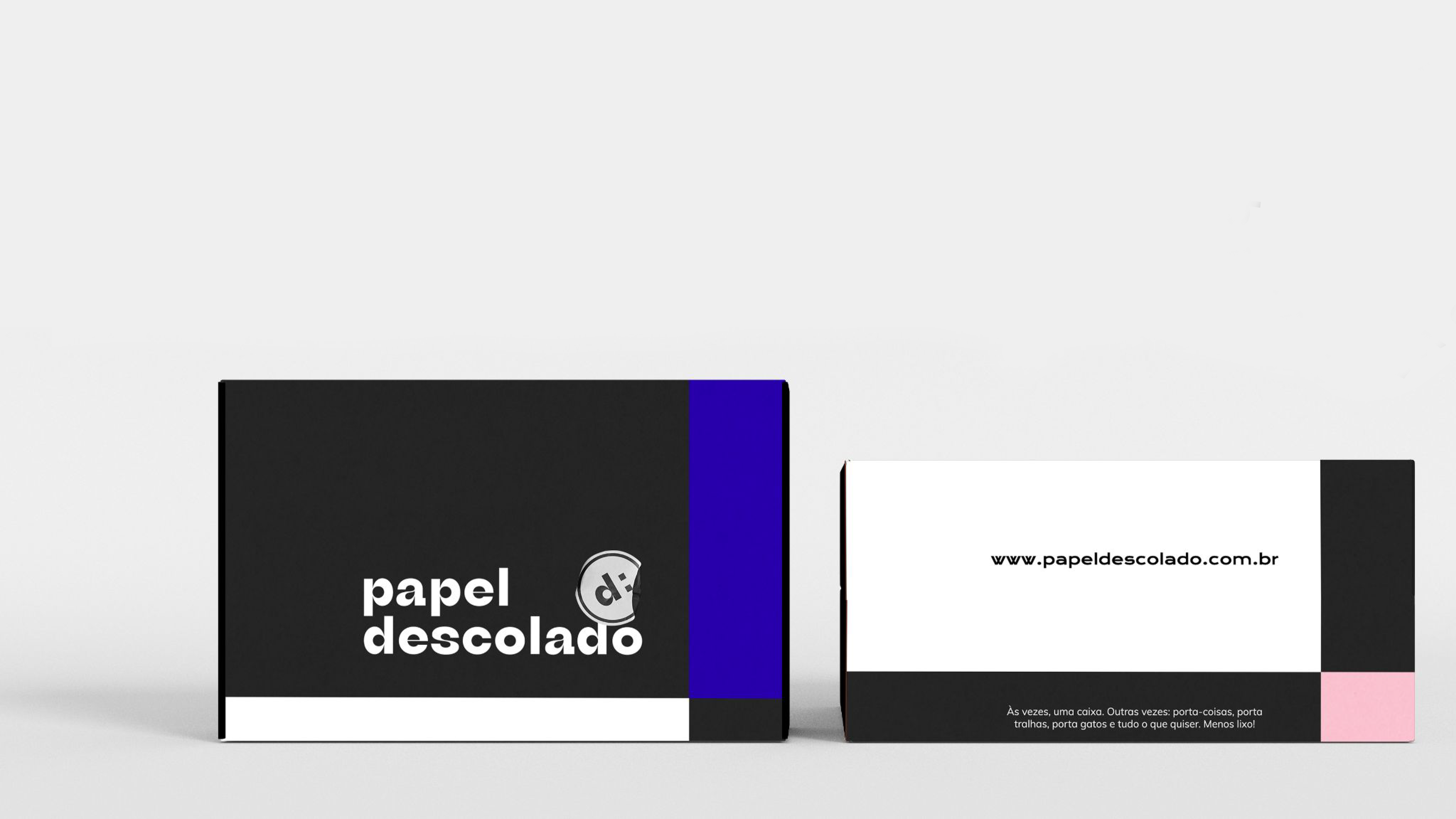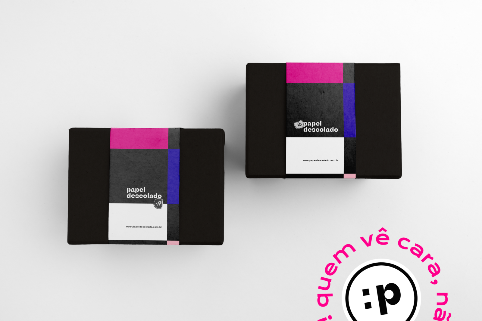 A junção das duas cores nesses tons não é utilizada por nenhum concorrente, gerando atração e se tornando memorável. Cada cor faz relação a um gênero específico e, no caso desta identidade, atrai todos. O uso dessa união abrange o feminino e o masculino, passando o sentido da marca ser livre, mente aberta. Tanto o rosa quanto o azul foram incluídos nas tonalidades matizadas, evidenciando o aspecto poderoso, jovem e forte. O preto e branco também fazem parte, pois a Papel Descolado carrega os sentidos de modernidade e versatilidade. As quatro cores juntas exaltam as qualidades de autenticidade, criatividade e inovação que a marca possui.